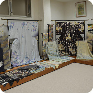 | 業務内容 | 振袖、訪問着、留袖、色無地、喪服、袋帯、名古屋帯、小紋着尺、コート地、紬訪問着、紬着尺、洗えるきもの、ゆかた他、和装小物全般の販売及びメンテナンス ジュエリー、高級バックの販売 |