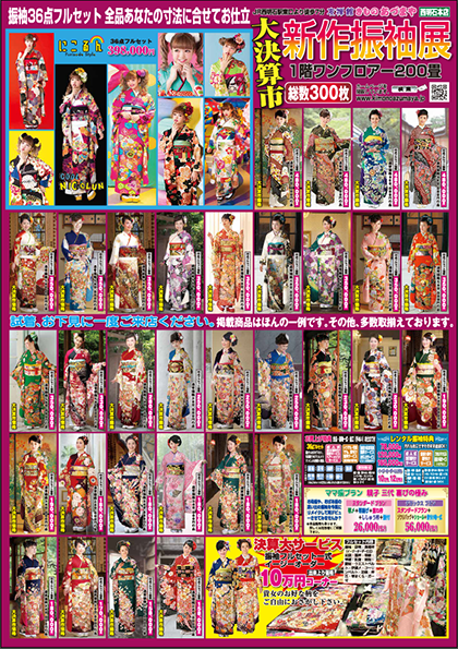 2019.10.17 【西明石本店】 10月24日(木)〜11月14日(月) 売りつくし大決算市 新作大振袖展 ※10月24日(木)〜10月28日(月)午前10時〜7時 ※10月30日(水)〜11月4日(月)午前10時〜6時 ※10月29日(火)は定休日です。