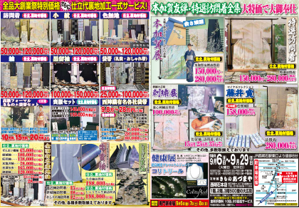 2024.09.06 【西明石本店】 令和6年9月6日(金)〜9月29日(日) 秋一番 大創業祭 全品大創業祭特別価格さらに仕立代、裏地、加工一式サービス! ※火曜日定休 ※9月6日(金)~9月9日(月)午前10時~午後7時 ※9月11日(水)~9月29日(日)午前10時~午後6時